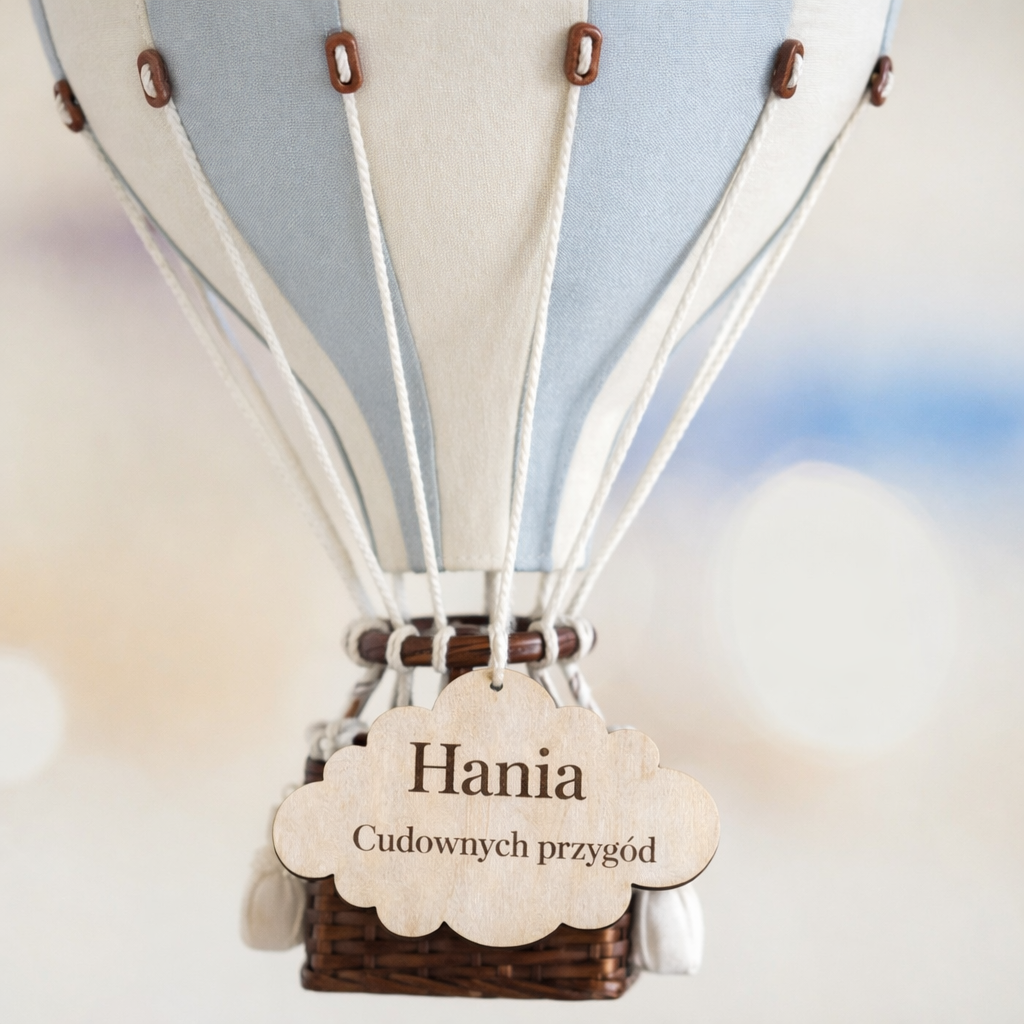Personalizowana drewniana zawieszka w kształcie chmurki to subtelny, ale bardzo znaczący dodatek, który nadaje balonowi dekoracyjnemu osobisty charakter.