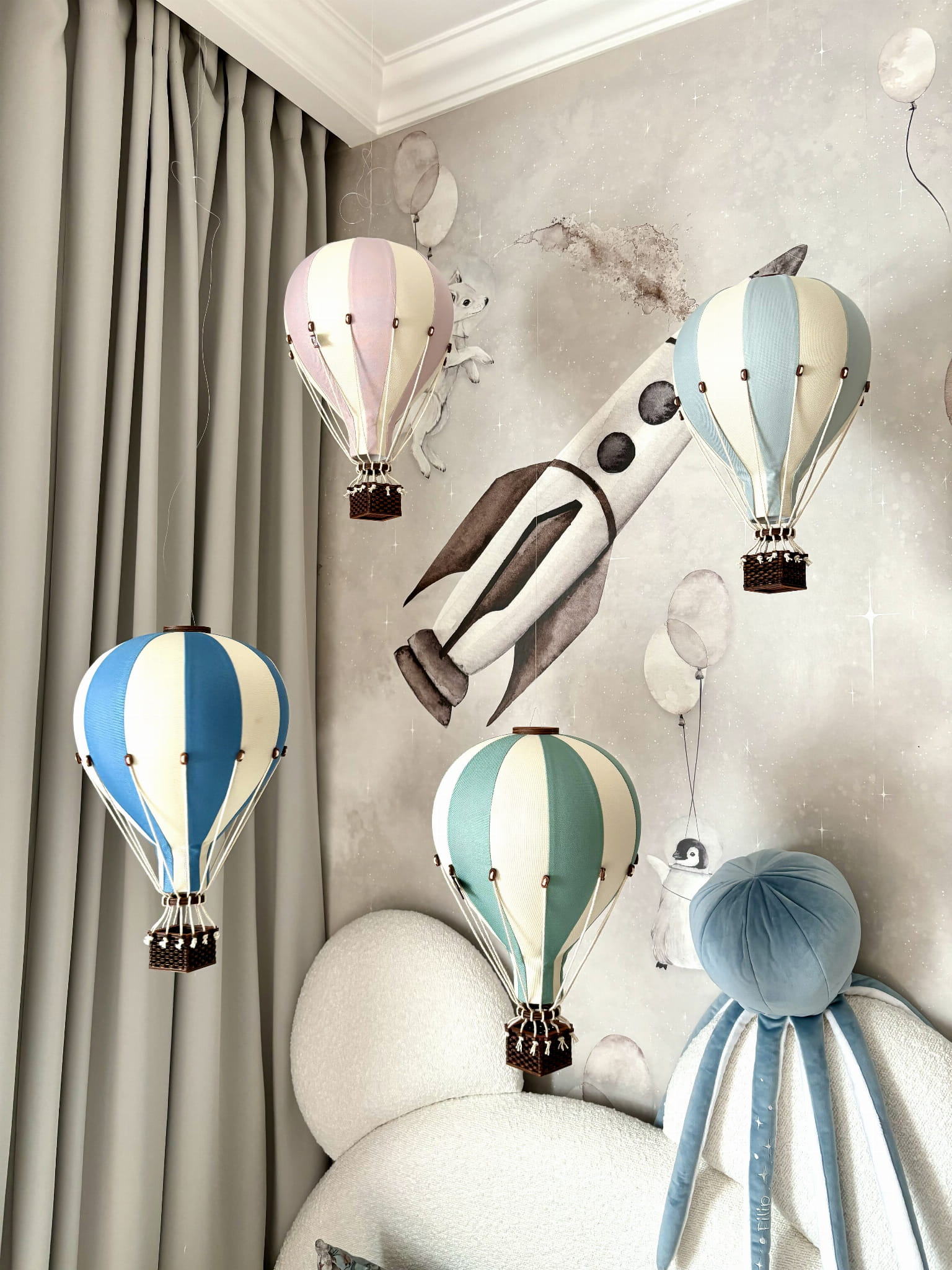 Balon dekoracyjny Super Balloon to wyjątkowy produkt, dzięki któremu można stworzyć magiczną aranżację w pokoiku dziecka niezależnie od jego wieku. Balon jest miniaturką balonów dmuchanych na ciepłe powietrze.